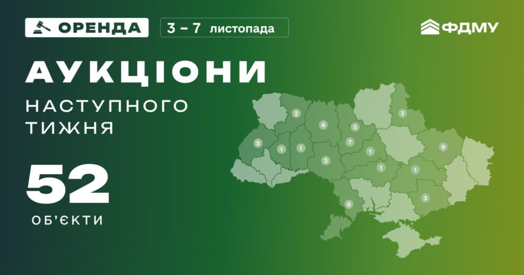 Наступного тижня ФДМУ планує провести 52 аукціони з оренди державного майна