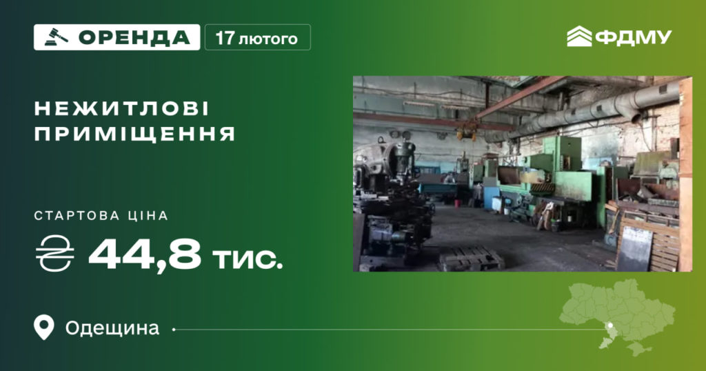 Фонд держмайна запрошує 17 лютого взяти участь в аукціоні з оренди нежитлових приміщень будівлі у м. Одеса. Стартова ціна оренди складає 44,8 тис. грн. Загальна площа активу — 777,65 м². …