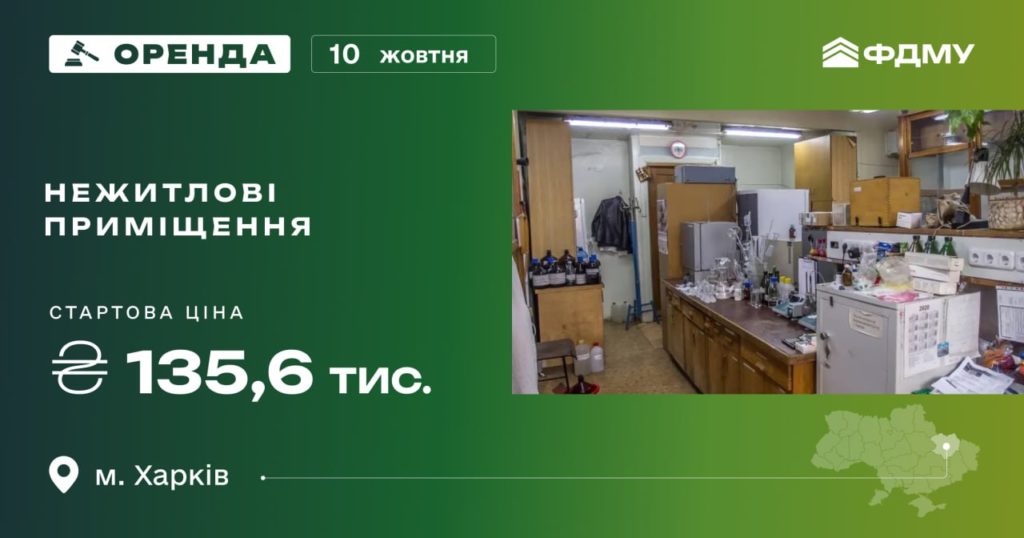 Фонд держмайна запрошує 10 жовтня взяти участь в аукціоні з оренди нежитлових приміщень у Харкові.