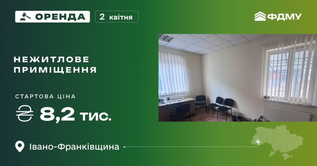 Фонд держмайна запрошує 2 квітня взяти участь в аукціоні з оренди нежитлового приміщення у м. Яремче.
