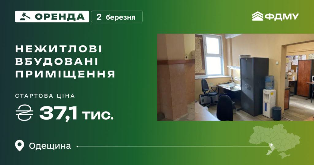 Фонд держмайна запрошує 2 березня взяти участь в аукціоні з оренди нежитлових вбудованих приміщень в Одеській області.