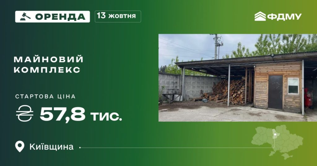 Фонд держмайна запрошує 13 жовтня взяти участь в аукціоні з оренди нерухомого майна на Київщині.