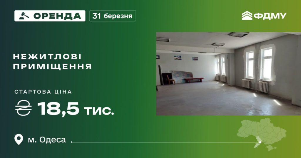 Фонд держмайна запрошує 31 березня взяти участь в аукціоні з оренди нежитлового приміщення в Одесі.